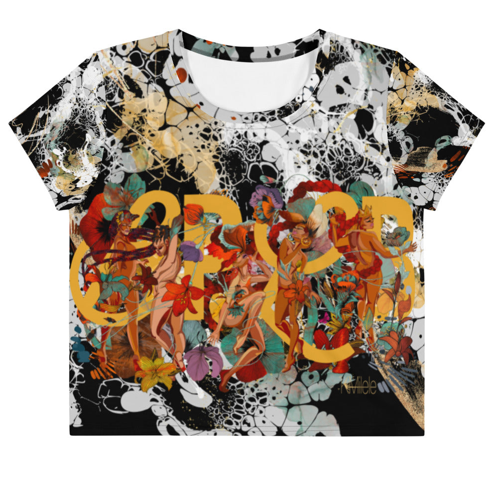 Looking for you next wardrobe favorite? Well, look no further because this crop tee is printed and sewn to fit you just right. To top that off, the original all-over design is definitely worth showing off, so don't hesitate to own one of these tees - they're meant to be adored.