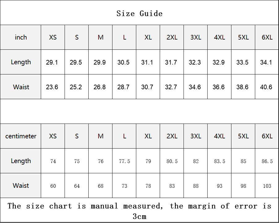 The size chart is manual measured, the margin of error is 3cm