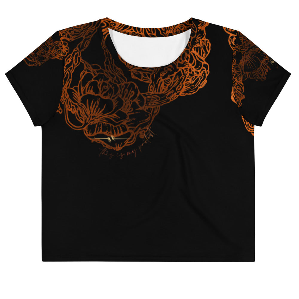 Looking for you next wardrobe favorite? Well, look no further because this crop tee is printed and sewn to fit you just right. To top that off, the original all-over design is definitely worth showing off, so don't hesitate to own one of these tees - they're meant to be adored.